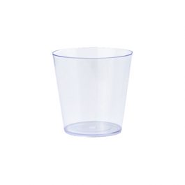 Copo em material acrílico. Proporciona mais firmeza que copos descartáveis convencionais.