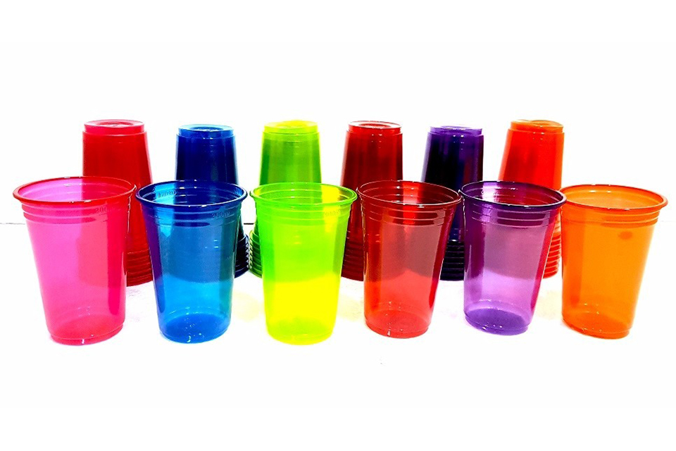 Copo descartável Neon Cores : Azul, Cinza, Laranja, Lilás, Preto, Rosa, Verde, Vermelho. Utilizar para bebidas frias.