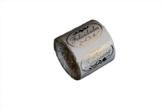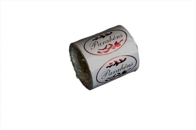 Etiqueta em diversas cores com dizeres: Parabéns – Com Amor – Com Carinho – Felicidades.